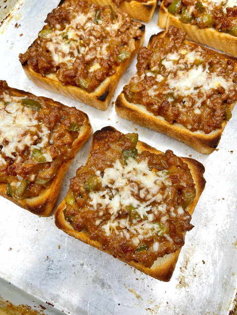 There is something special about a delicious Sloppy Joe, and today we are placing our easy to make Sloppy Joe mix on top of golden Texas toast. It's the most delicious open faced sandwich!